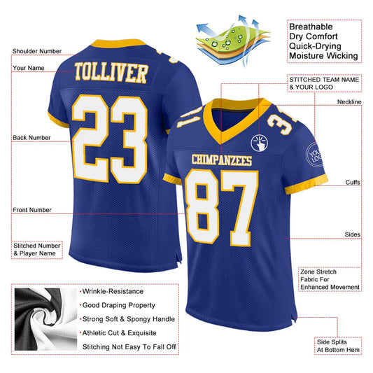 Custom Royal White-Gold Mesh Authentic Football Jersey