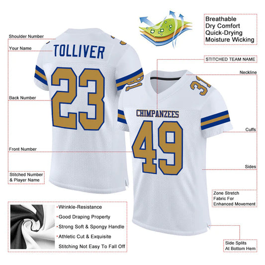 Custom White Old Gold-Royal Mesh Authentic Football Jersey