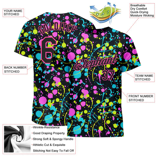 Custom Graffiti Pattern Black-Pink 3D Neon Splatter Performance T-Shirt