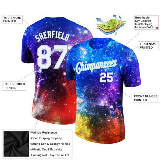 Custom Galactic White-Light Blue 3D Performance T-Shirt