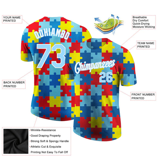 Custom Autism Awareness Puzzle Pieces Light Blue-White 3D Performance T-Shirt