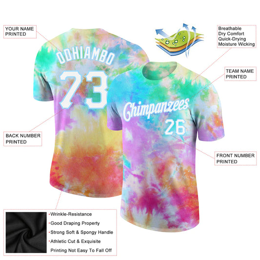 Custom Tie Dye Aqua-White 3D Performance T-Shirt