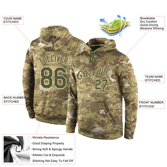 Custom Stitched Camo Olive-Cream Sports Pullover Sweatshirt Salute To Service Hoodie