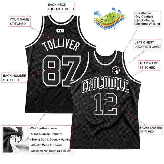 Custom Black Black-White Authentic Throwback Basketball Jersey