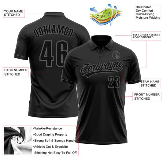 Custom Black Black-Steel Gray Performance Vapor Golf Polo Shirt