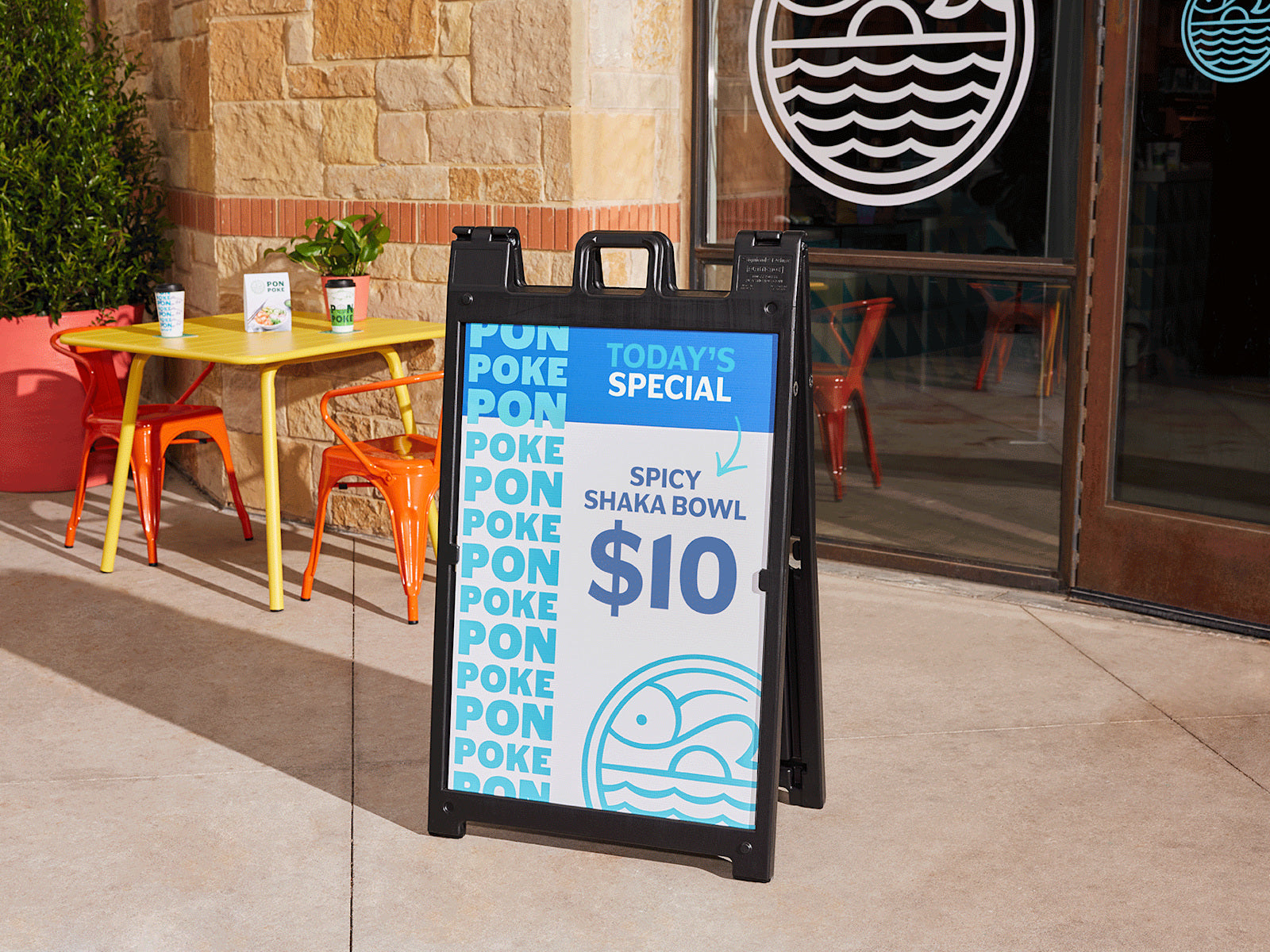 Elevate your marketing game with Signicade® A Frames. Our durable, rust-proof plastic frames come in standard or deluxe, with the option of a protective glossy coating. With the ability to fill with water or sand, you can confidently display your message, rain or shine. Perfect for sidewalks and parking lots.