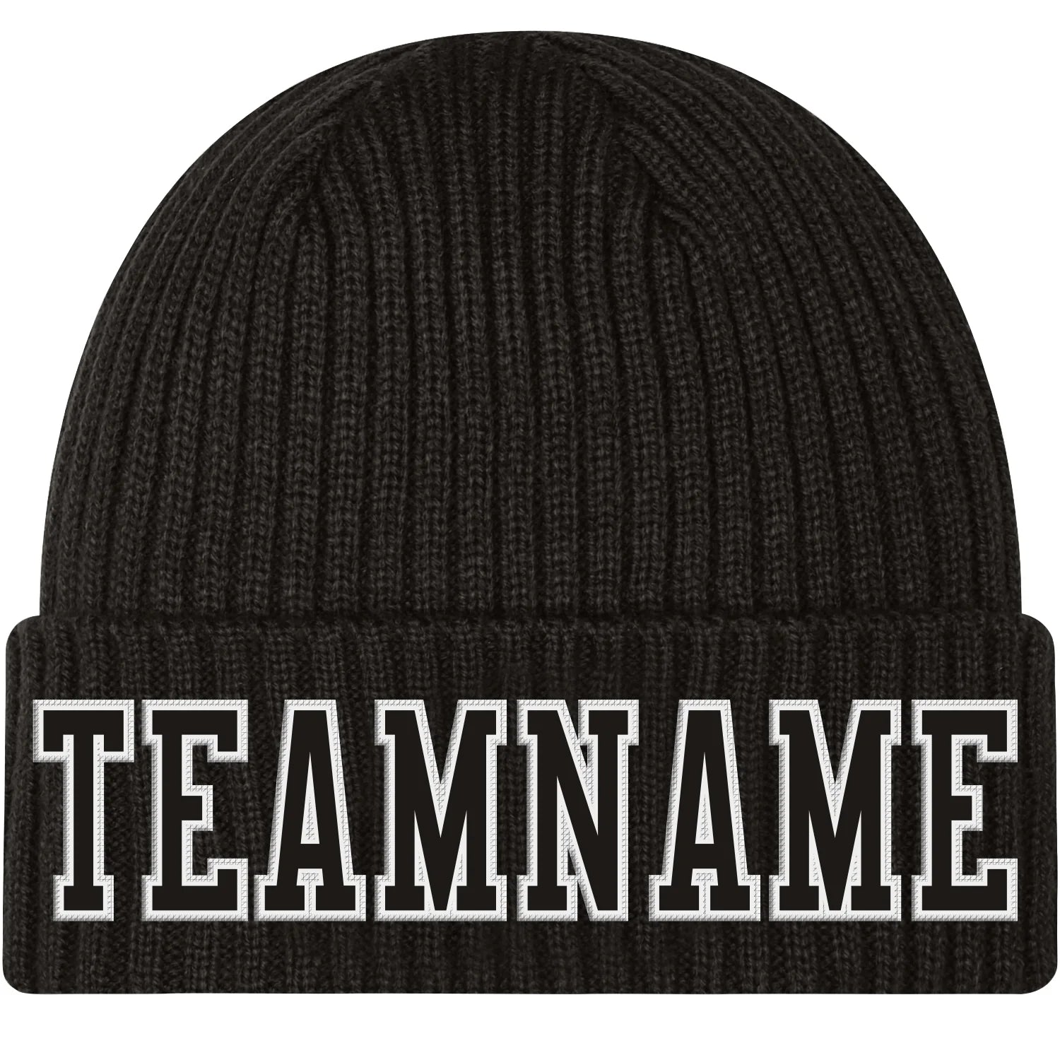Custom Black Black-White Stitched Cuffed Knit Hat
