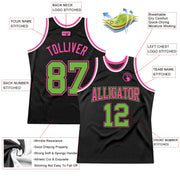 Custom Black Neon Green-Pink Authentic Throwback Basketball Jersey