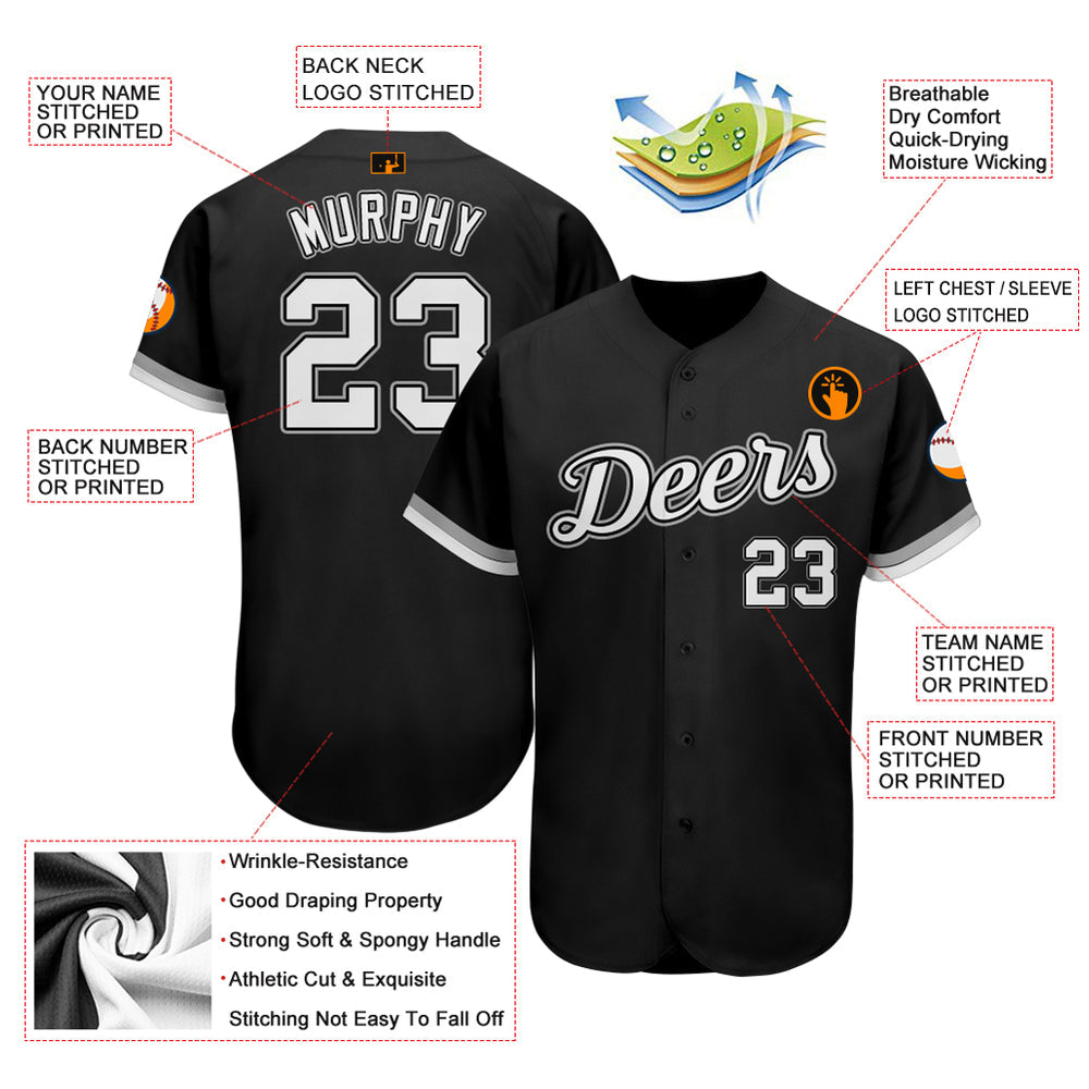 Custom Black White-Gray Authentic Baseball Jersey