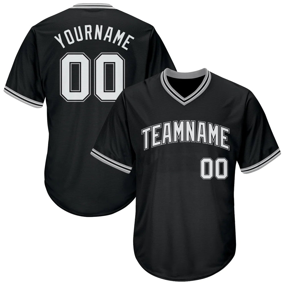 Custom Black White-Gray Authentic Throwback Rib-Knit Baseball Jersey Shirt