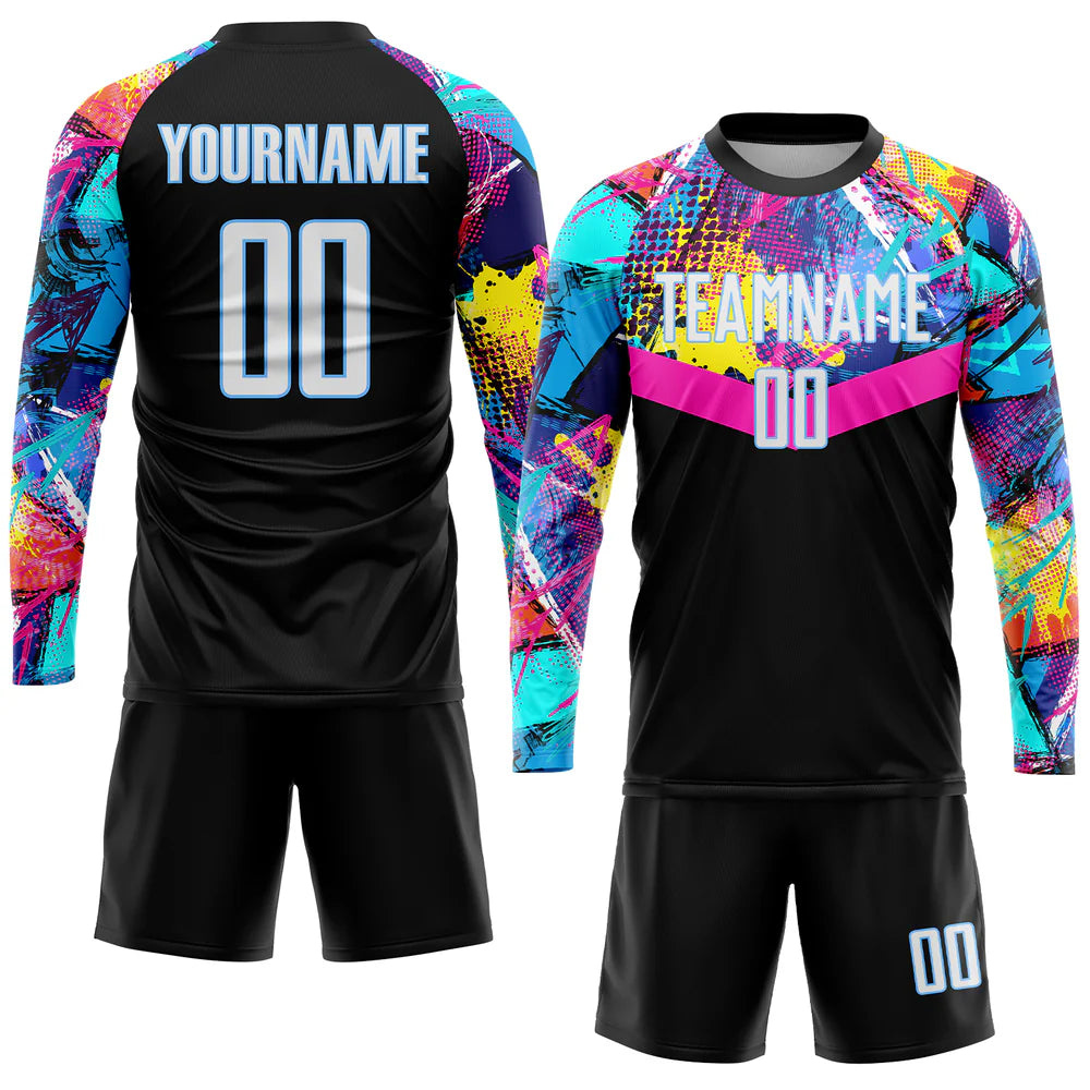 Experience the ultimate comfort and style on the field with our Custom Black White-Light Blue Sublimation Soccer Uniform Jersey. Made with high-quality materials and customizable designs, this jersey offers both performance and a unique look. Stand out from the competition in style and dominate the game.