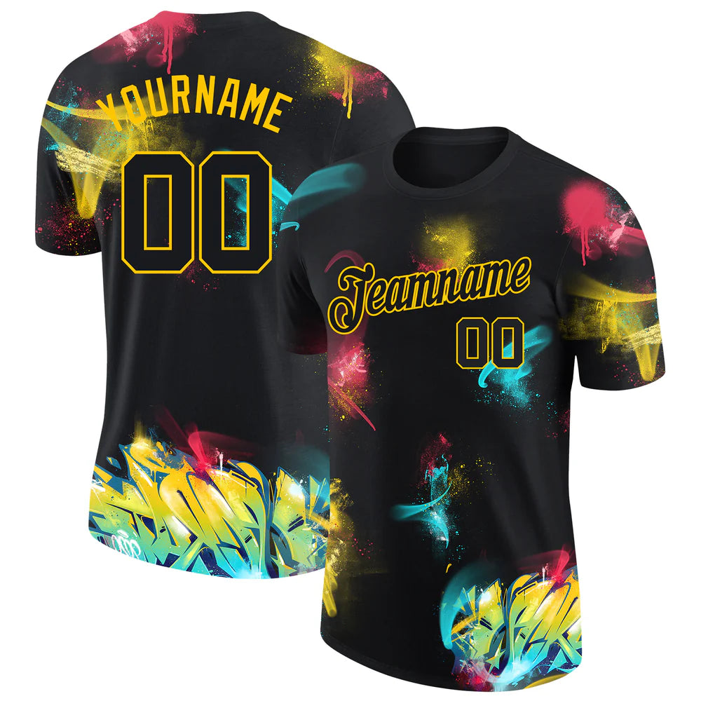 Custom Graffiti Pattern Black-Gold 3D Performance T-Shirt