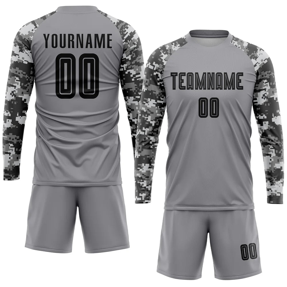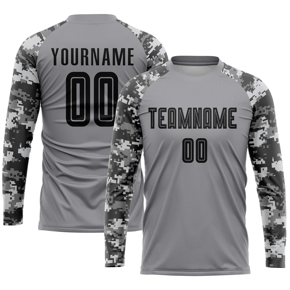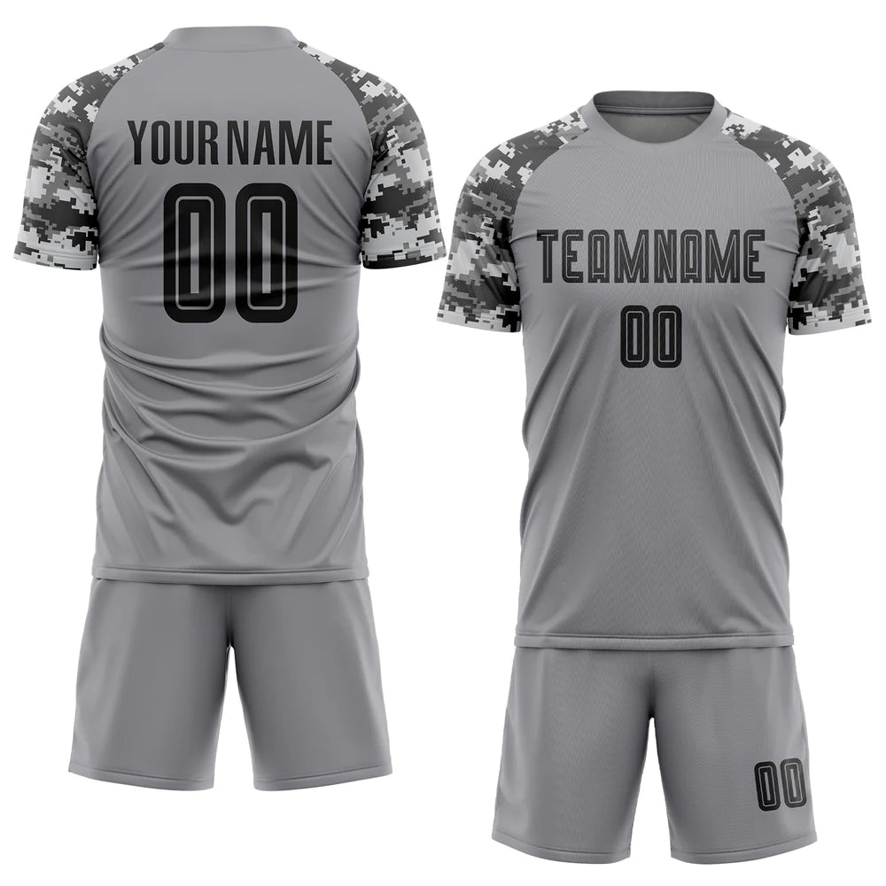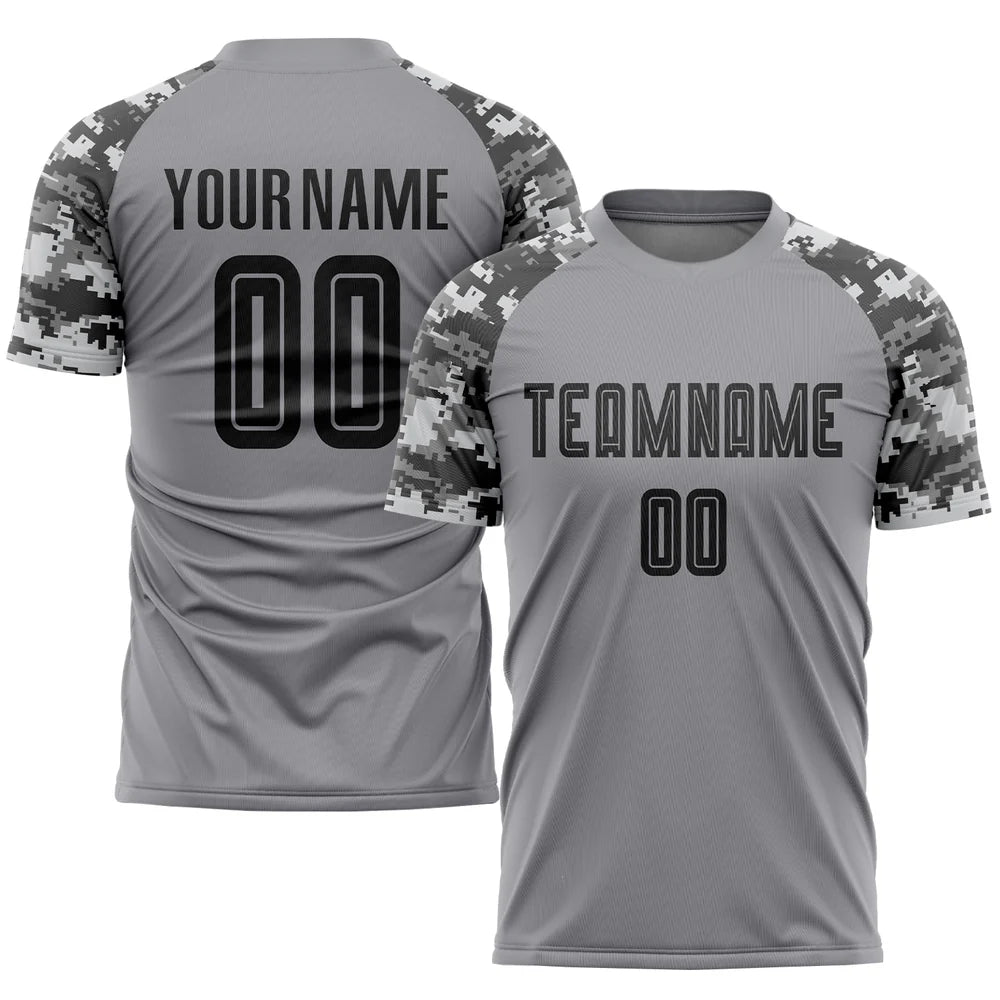 Custom Gray Black-Camo Sublimation Soccer Uniform Jersey