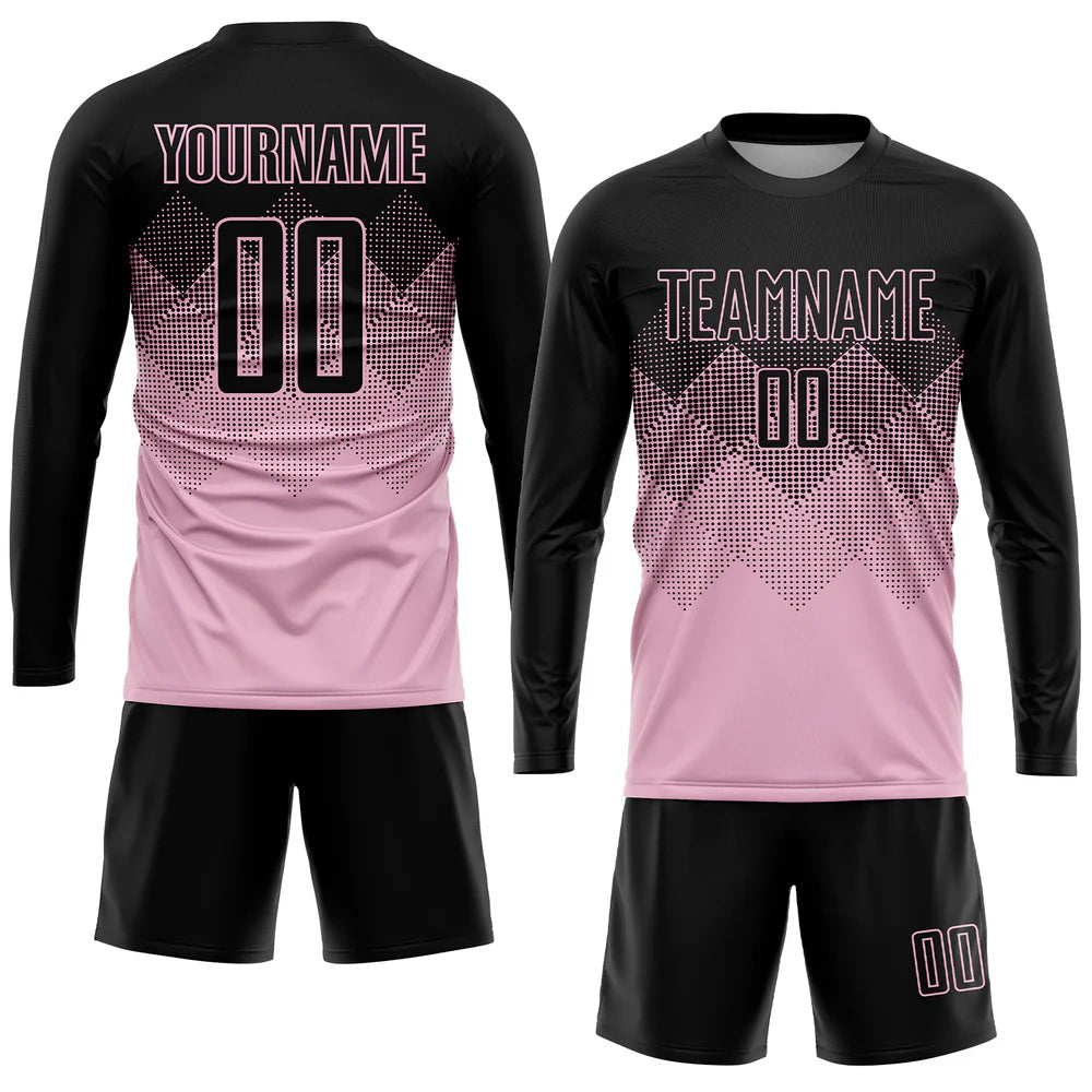 Custom Light Pink Black Sublimation Soccer Uniform Jersey