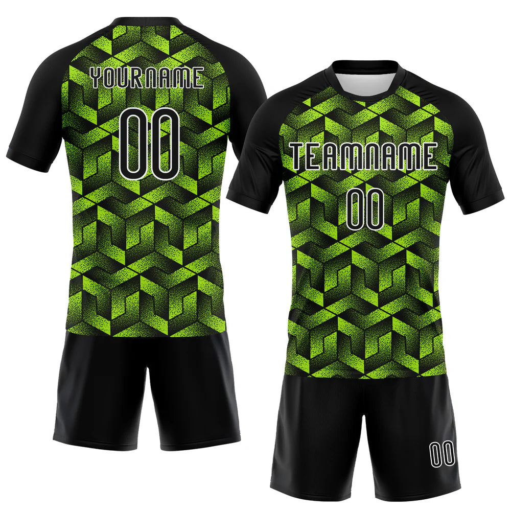 Custom Neon Green Black-White Geometric Shape Sublimation Volleyball Uniform Jersey