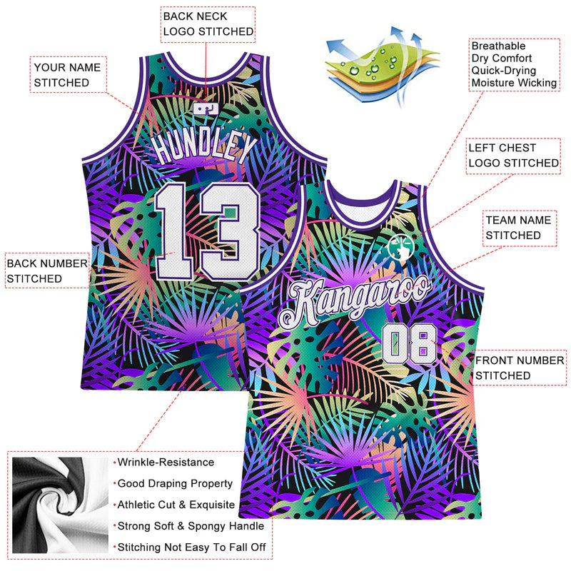 This Custom Purple White-Purple 3D Pattern Tropical Hawaii Plants Authentic Basketball Jersey is perfect for any basketball enthusiast looking to add a touch of tropical style to their game. The vibrant purple and white colors with a 3D pattern of tropical plants make this jersey truly unique. Show off your love for the game and the tropics with this authentic jersey.