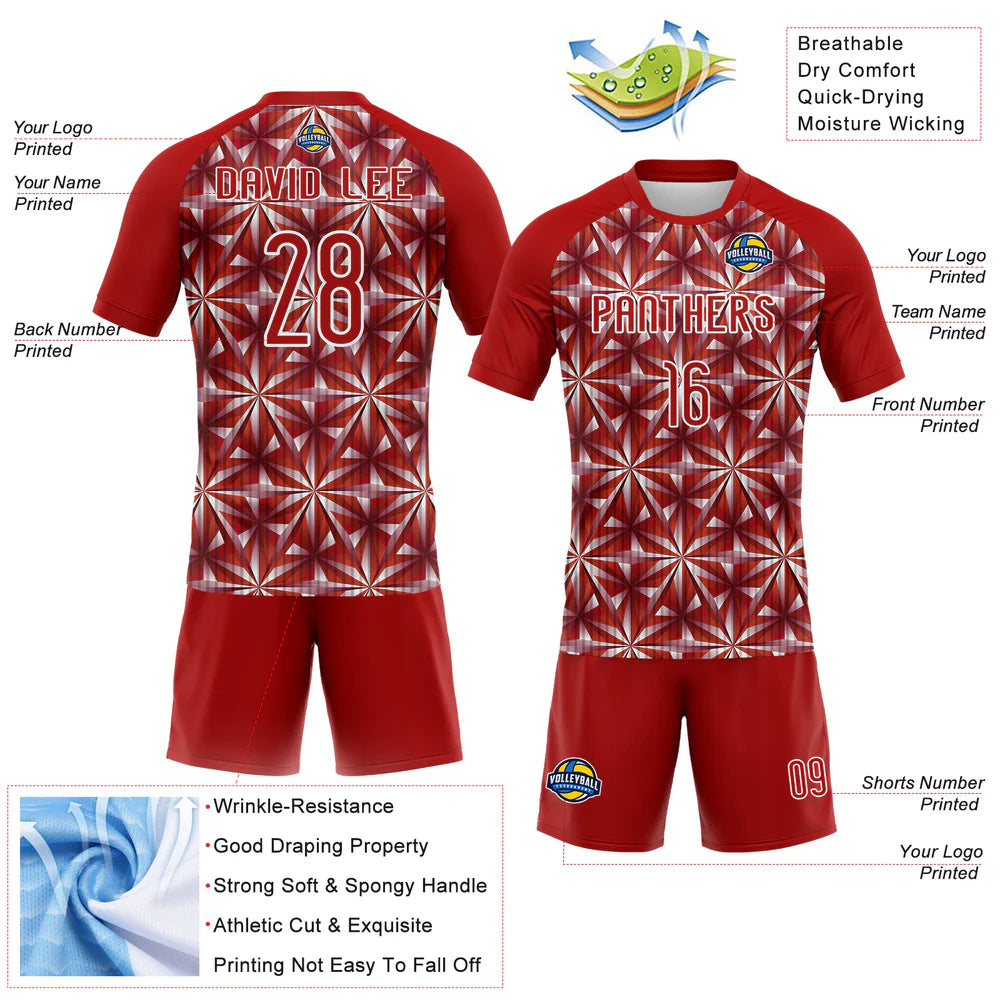 Custom Red White Geometric Shape Sublimation Volleyball Uniform Jersey