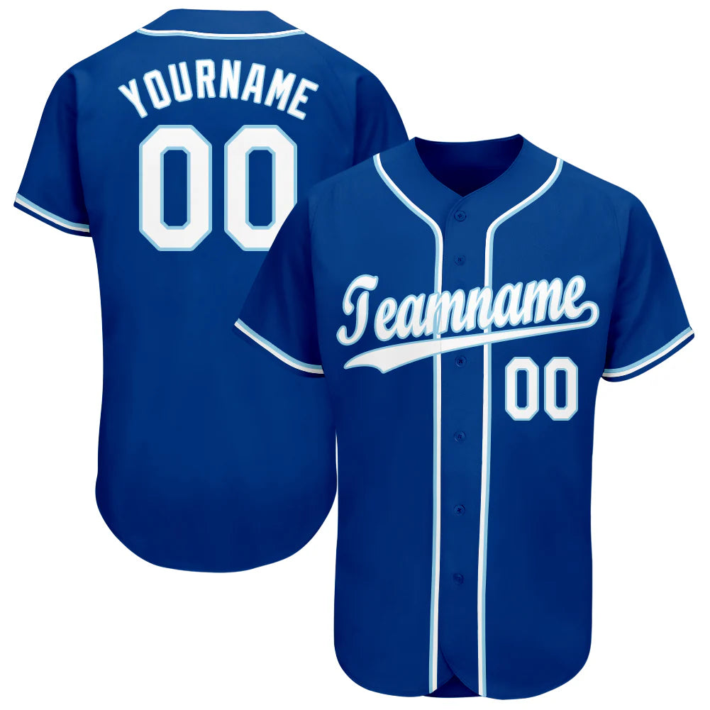 This custom Royal White-Light Blue Baseball Jersey features a unique and eye-catching design that sets it apart from traditional jerseys. Made with high-quality materials, this jersey offers comfort and durability for players on the field. Showcase your team spirit and stand out from the rest with this customized jersey.