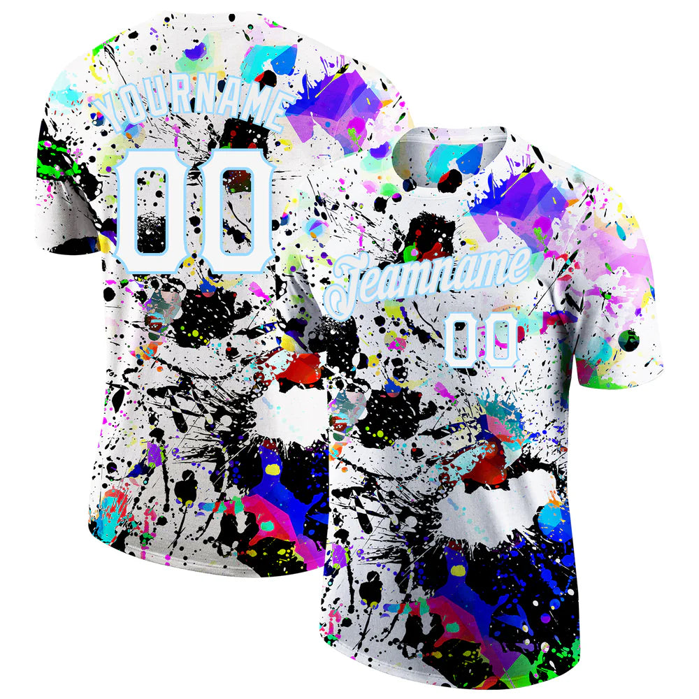 Custom Splashes Graffiti Pattern White-Light Blue 3D Performance T-Shirt