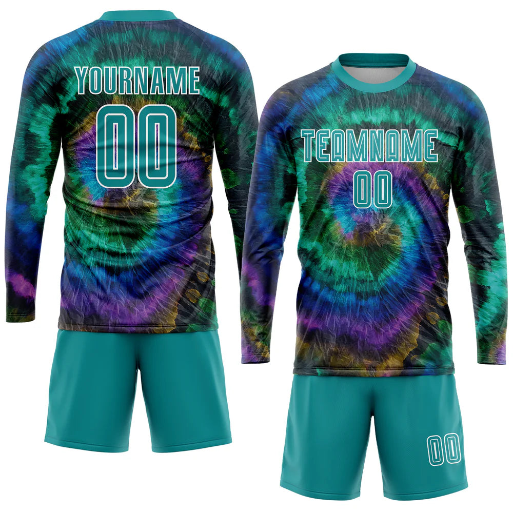 Custom Tie Dye Teal-White Sublimation Soccer Uniform Jersey
