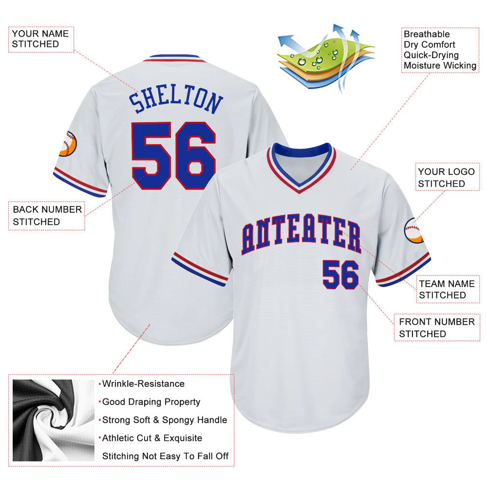 Custom White Royal-Red Authentic Throwback Rib-Knit Baseball Jersey Shirt