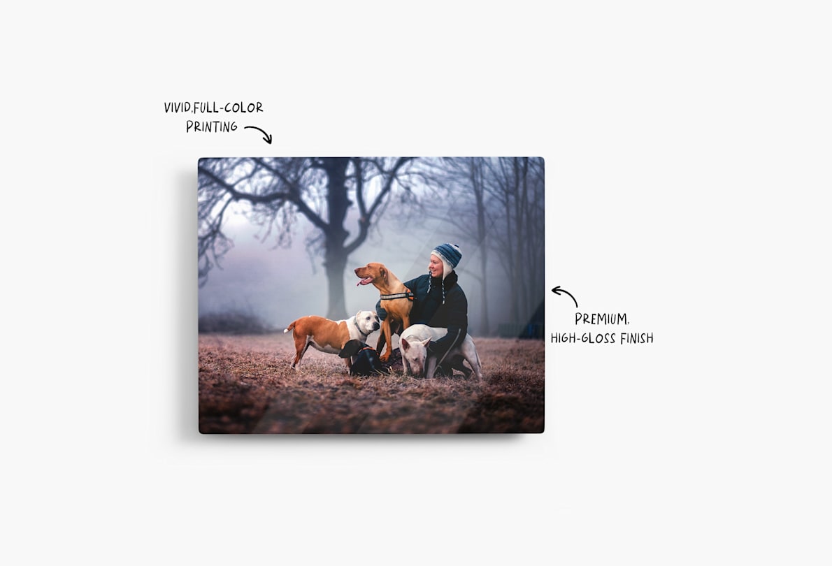Our metal prints are cut from ChromaLuxe® metal, a high-quality aluminum prized for its durability and exceptionally vibrant finish. This lightweight, waterproof material is even suitable for open-air spaces (think patios and decks). And with a built-in keyhole and French cleat, hanging is a breeze. Whether you’re decorating exteriors, dressing up hallways or need a gift for loved ones, printing photographs on metal is a top choice for artful displays that stand the test of time.