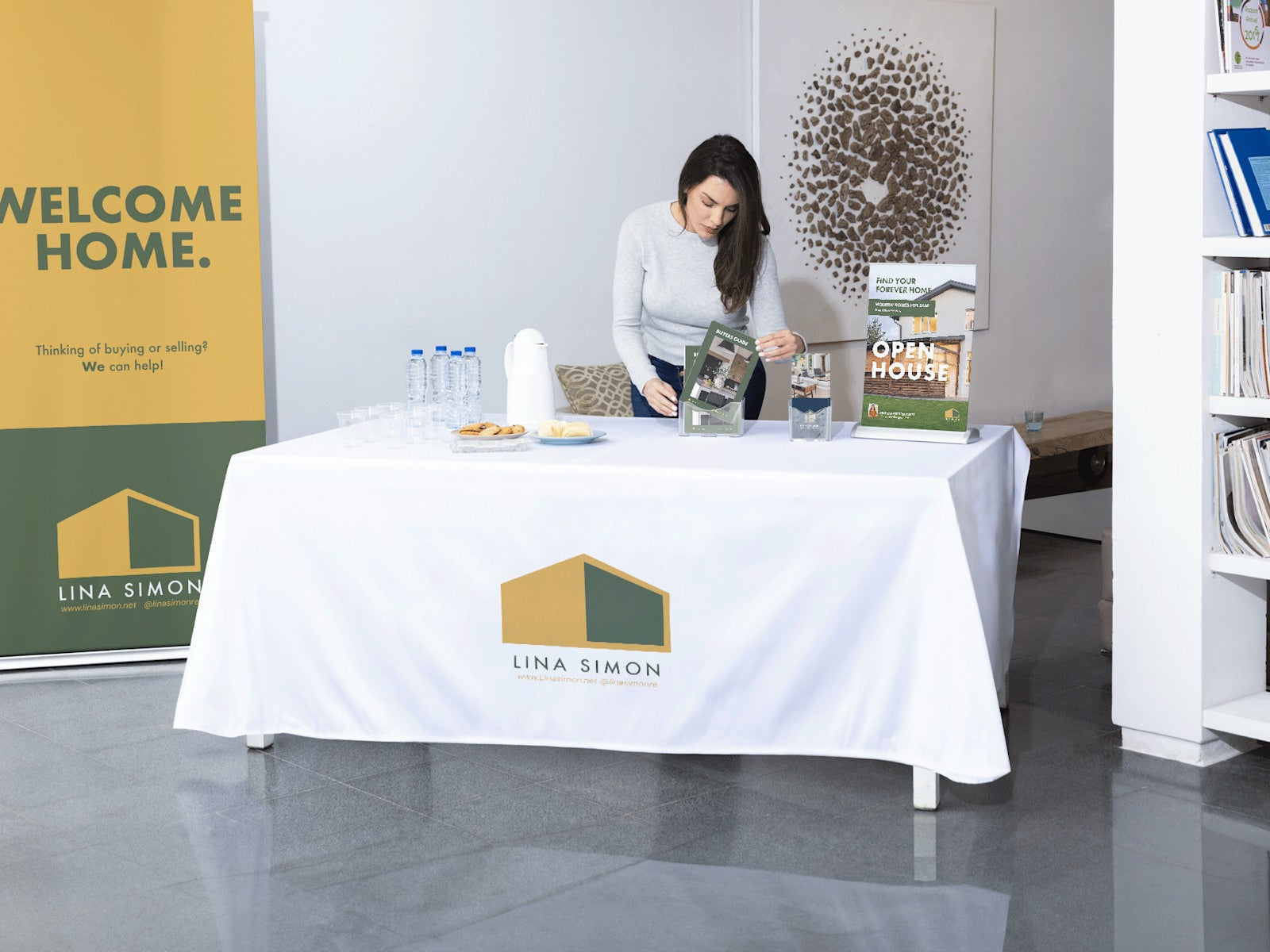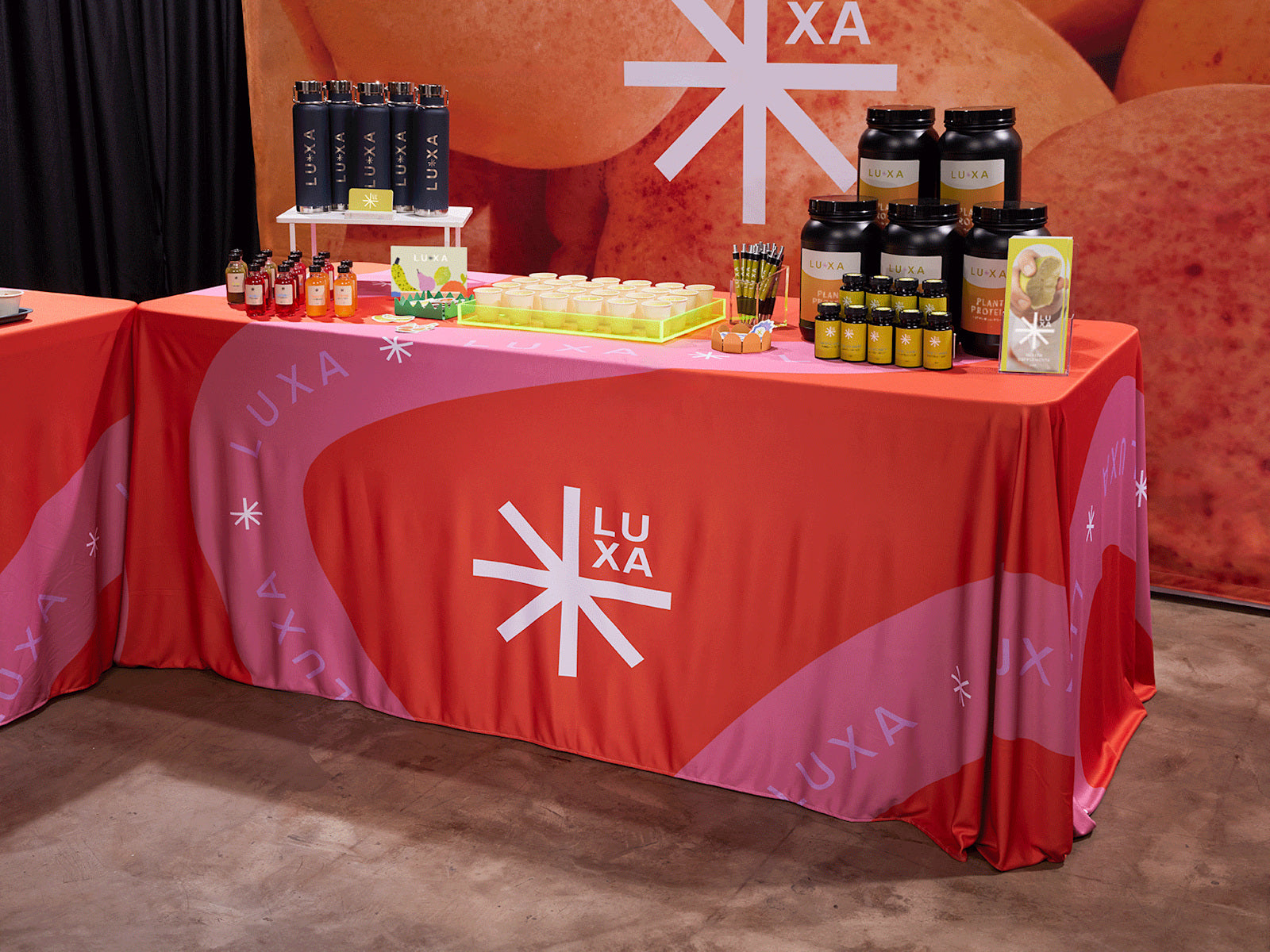 Branded table covers are a must-have for businesses attending trade shows. Help your clients promote themselves with their logo or custom design.